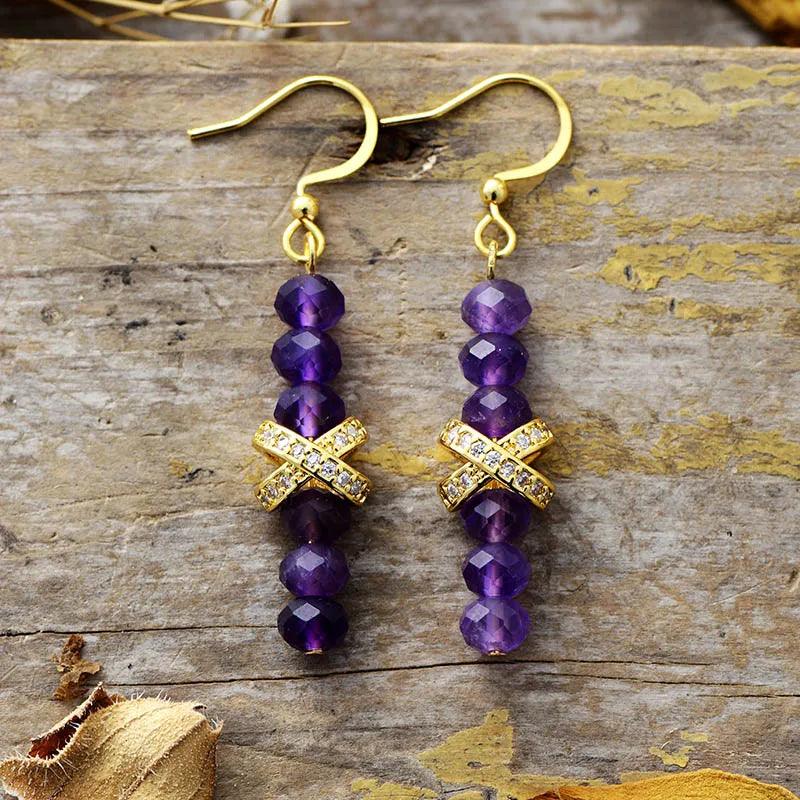 Boucles d'Oreilles Rayonnante Énergie en Amazonite & Améthyste