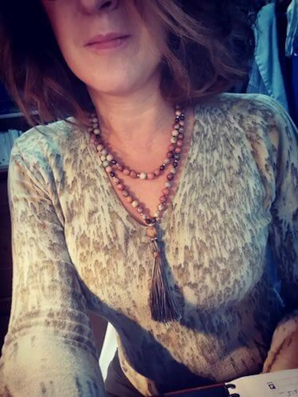 Ce Mala contient ces magnifiques énergies pour renouveler la vitalité et la force de vie du cœur à partir de la Rhodonite rose, de l'incroyable Shoushan, du Jaspe jaune aussi connu sous le nom de Jaspe bourdon et de l'Hématite.